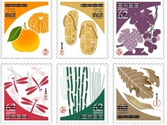 色のラインアップは、62円切手が「撫子色」「竜胆色」「柑子(こうじ)色」「藁(わら)色」「葡萄(えび)色」「女郎花色」「群青色」「茜色」「木賊(とくさ)色」「朽葉(くちば)色」。82円切手が「紅葉色」「月白」「黄金(こがね)色」「栗色」「萩(はぎ)色」「玉子色」「柿色」「胡桃(くるみ)色」「枯草(かれくさ)色」「鶸(ひわ)色」です。