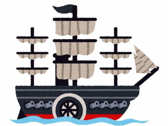 幕末の1853年、4隻の船が浦賀(今の神奈川県)に来航。日本を揺るがす大事件となりました。この船は一般に「黒船」と呼ばれます。もちろん船体が黒かったからです。