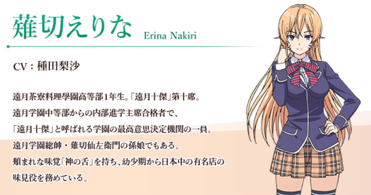 アニメ「食戟のソーマ」、薙切えりな役の声優が変更 種田梨沙から金元寿子へ