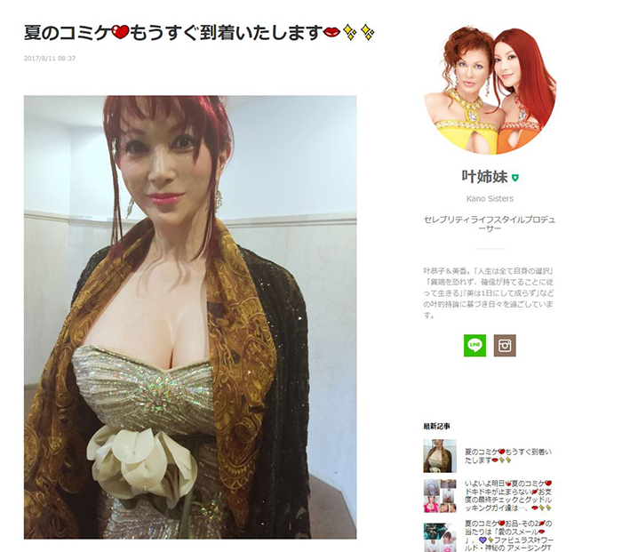 ブログでコミケ参戦衣装を披露した美香さん(叶姉妹のブログより