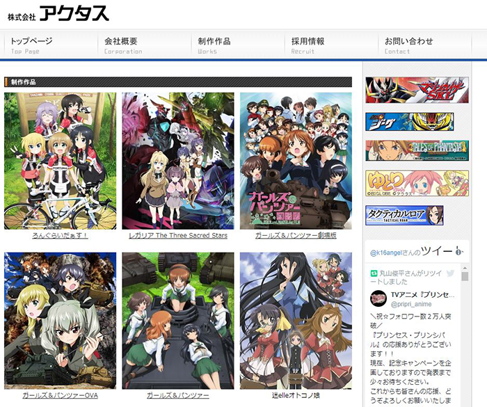 アクタスは人気アニメ「ガールズ&パンツァー」(ガルパン)や、現在放送中のアニメ「プリンセス・プリンシパル」などを手掛ける制作会社。