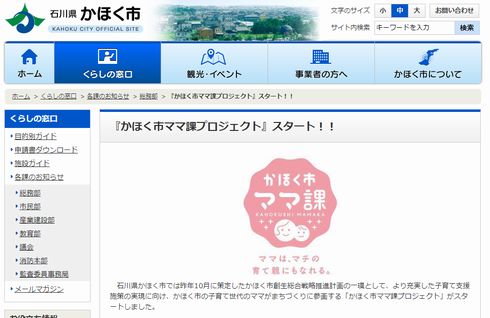 かほく市ママ課プロジェクト」紹介ページ