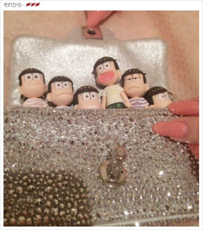 同アニメ2期の放送開始が10月2日に決定したことを受けて、「もうすぐ! もうすぐですがワクワクで待ちきれないですよ」と胸を弾ませた美香さん。以前から、姉の恭子さんに布教を画策したり、6つ子の誕生日にはキスマーク付のメッセージカードを贈るなどガチファンっぷりを見せつけていましたが、今回も「お気に入りのキーホルダーですよ」と高級ブランドバッグにつけられた「おそ松さんグッズ」を披露しています。
