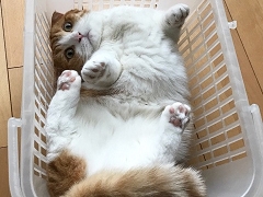 すっぽりとカゴにはまったネコちゃんの様子が、Ameba公式トップブロガー・短足兄妹さんのブログ「茶太郎 きなこの短足日記」で紹介されています。