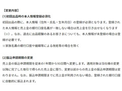 売上金の取り扱いにも変更が入り、仕様変更適用後の取引では、売上金の振込申請期限が従来の1年間から90日間に。期限までに売上金が利用されなかった場合は、登録された銀行口座へ自動的に振り込まれます。