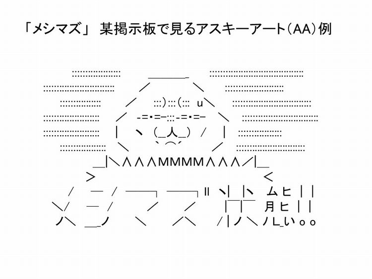 一方、メシウマの対義語としてのメシマズは、例えば嫌いな人が成功を収めたり、嫌いなチームが勝つなどした際によく使われます。2ちゃんねるなどでは「メシマズ状態」のアスキーアートもよく見かけますね。