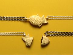 私は頭、あなたはしっぽ 1匹のたい焼きを分け合うペアネックレス爆誕