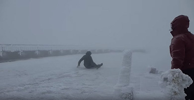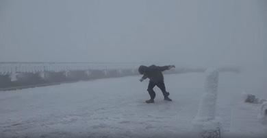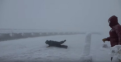 強風に立ち向かおうとするが……(YouTube:100+ MPH Winds 2016/05/16/Mount Washington Observatoryより)