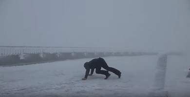 この動画は、米国のマウントワシントン天文台が公開している、時速100マイル(=秒速44.7メートル)以上の暴風の中に生身で出てみた様子を撮影したもの。まっすぐ立つことすらままならず、両足が地から離れた瞬間身体が浮き、吹き飛んでしまう。