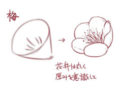 梅や桜、バラなど、ポピュラーな花の描き方をまとめたツイートが、参考になると評判です。
