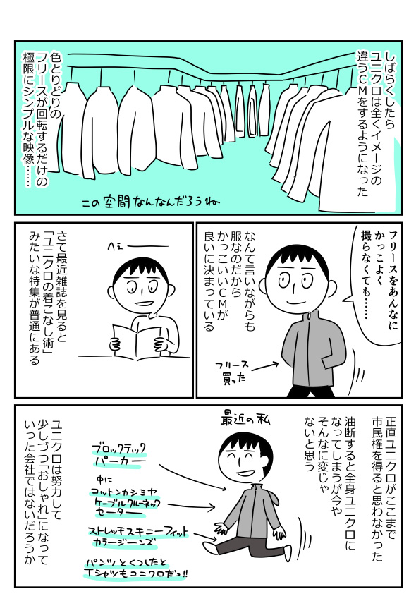 自分でもよく着てしまうのですが、ついつい昔のユニクロのインパクトも思い出してしまいますね。