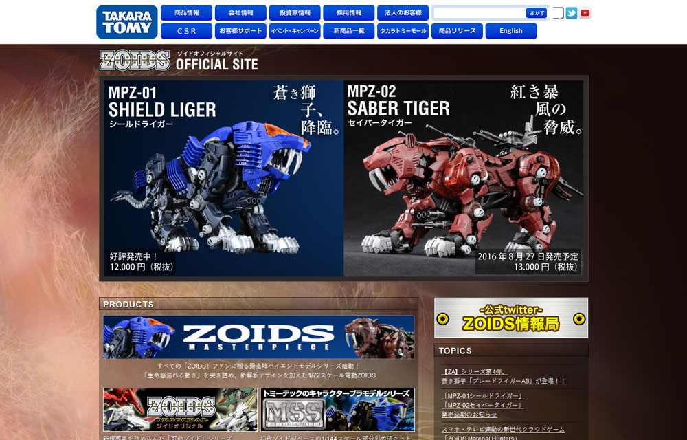 「ゾイド」オフィシャルサイト(タカラトミー)
