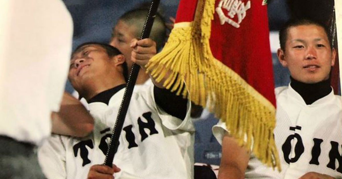 優勝旗を掲げる若かりし日の中田さん(画像は中田翔Instagramから)