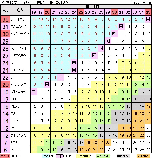 あなたと「同い年」のゲーム機はどれ? 35歳だと「ファミコン」……一目で分かる表に歳月を感じる