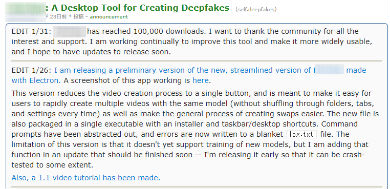 発端は2017年12月に、掲示板サイトのユーザーがAIを使って顔をすげ替えるツールや、顔を人気女優に差し替えたフェイクポルノ動画を投稿したこと。このツールはGoogleが公開している技術を使用していました。ニュースサイトMotherboardによると、動画はよく見ると不自然だけどパッと見はだまされる出来とのこと。その後、別のユーザーが簡単に使えるツールを公開し、フェイクポルノの投稿は増えたといいます。