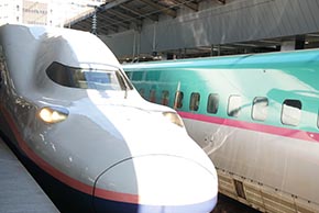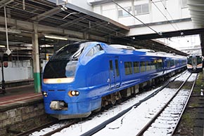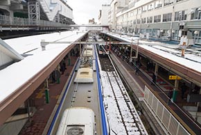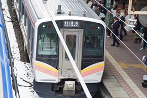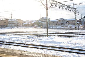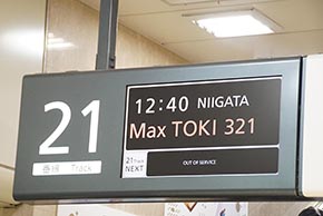 東京駅から乗り込んだのは2階建てのフォルムが印象的なE4系新幹線「Maxとき」。これは、2020年までに引退が予定されており、2018年現在、徐々に新型車両に置き換えられている「もうすぐ乗れなくなってしまう」貴重な車体です。途中雪景色を眺めたりしながら、約2時間ほどで新潟駅に到着しました。ちなみに筆者は新幹線に乗ると必ず車内販売のアイスクリームを食べるのですが、Maxときでは新潟らしく「こしひかりジェラート」が提供されていました。つぶつぶ食感がおいしかったです。