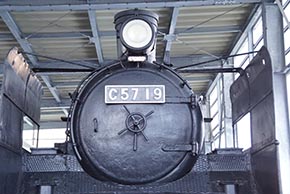 「C57形式蒸気機関車19号機」は、1937年から201両製造された代表的な旅客用蒸気機関車です。形式名から「シゴナナ」、あるいは、ボイラーがほかの機関車より細身で優雅に見えたことから「貴婦人」の愛称で親しまれました。