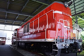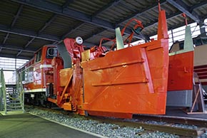 「国鉄DD14 形式液体式ディーゼル機関車332号機」は豪雪地帯の鉄道で活躍した、国鉄時代のロータリー式除雪用機関車です。線路の上にある雪を先頭につけられたロータリーヘッドでかき寄せて取り込み、線路の外に吹き飛ばします。雪の中で映える赤いカラーリングがカッコいいですね。