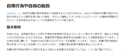ヘルプセンター「自傷行為や自殺の助長」