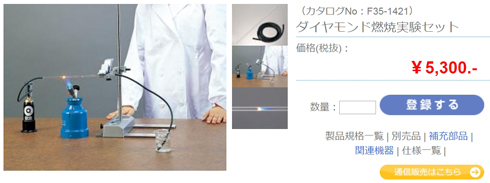 ちなみに、この燃焼実験を行うための理科用教材も考案されているのですが、「ダイヤモンドをガラス管に入れ、ガスバーナーで熱しながらボンベで酸素を供給する」という多少手の込んだ仕掛けになっています。もしも日常生活でこれと似た状況に陥ったら、ダイヤモンドより先に人間が大変なことになるのでは?