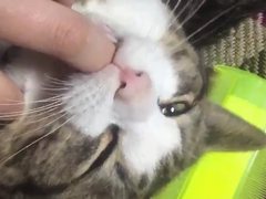 喉をグルグル鳴らし、おしゃぶり代わりの指をちゅうちゅうする様子がとってもかわいいです。最後は前足で飼い主さんの手をおさえて穏やかな表情で指を返してくれています。やわらかそうで、見ているだけで平和な気持ちに……。