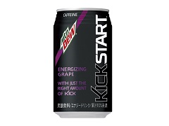「キックスタート」はアメリカで人気沸騰中のエナジードリンク。日本で発売するにあたって20代から40代の男性をターゲットにした日本独自の中身を開発したそうです。味は口当たりの良いグレープ果汁味で、カフェイン、ビタミンB群などの成分が含まれています。
