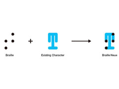 点字に墨字を重ねて「Braille Neue」(新たな点字)に