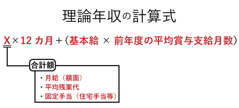 理論年収=X×12カ月+(基本給×前年度の平均賞与支給月数)