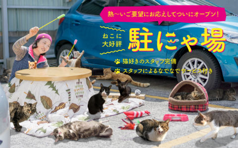 駐車場予約サービスのakippaが、ネコ専用駐にゃ場をオープンしました。現地にはぬくぬくこたつや爪研ぎなどを用意し、スタッフ(下僕?)も完備しています。