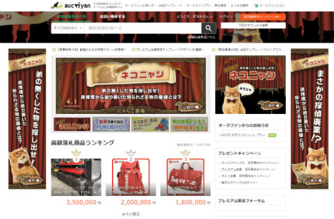 フリマ・オークション・ショッピング相場情報サイト「オークファン」がネコ界向けの「オークニャン」をリリース。オークファンのサイトも猫まみれにゃーん。
