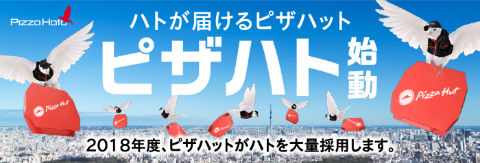 ピザハットが、ハトがピザを届ける業界初のサービスを開始。約100日間のトレーニングを積んだハト1万羽を「ピザハト(PIZZA HATO)」「ピザハト」として採用し、ハトが持つ最高時速157キロという飛行スピードを生かして全国にスピーディーに配送します。