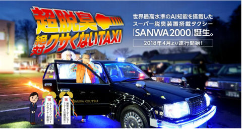 三和交通が、世界初「超脱臭!! 絶対クサくない TAXI」の運行を開始します。どんな臭いも99.99%以上脱臭するAI搭載のスーパー脱臭装置を搭載した「SANWA2000」が4月1日16〜19時に横浜駅周辺・みなとみらい・新横浜から渋谷を移動予定。