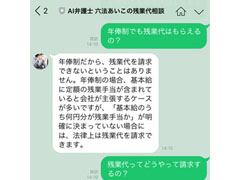 「年俸制でも残業代はもらえるの?」「請求する方法は?」といった質問に答えてくれるチャットボット「AI弁護士 六法あいこの残業代相談」がLINE上でスタートしました。