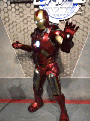 そしてもう1つ。2017年1月にオープンしたばかりのアトラクション「アイアンマン・エクスペリエンス」にも触れておかなければなりません。実はこのアトラクションの隣では、香港スターク・エキスポが開催されています。ここでは天才発明家でもあるトニー・スタークの発明品が展示されており、そのツアー「Iron Man Tech Showcase」に参加していると、なんとアイアンマン本人もやってくるのです。かっこいい……。