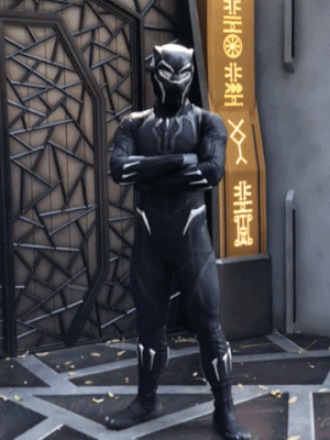 現在、なんとあのワカンダ国王にしてスーパーヒーロー、大ヒット映画「ブラックパンサー」から、ティ・チャラ国王とも会えるのです! 私も思わずワカンダフォーエバーとつぶやき、腕をクロスしてしまいました。これは大きなお友達にもうれしいですね。