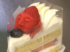 「釈迦ケーキ」爆誕 花祭りの記念にパティシエに頼んだらブッダ顔のイチゴショートが完成してありがたや
