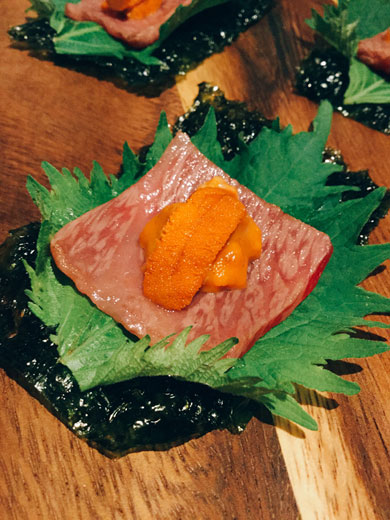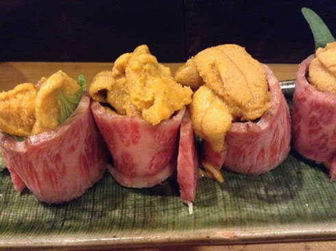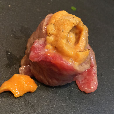 ものすごくおいしいウニが、ものすごくおいしいお肉で巻かれていて、ものすごくおいしいトリュフオイルがかかってて、ものすごくおいしい食べ物はものすごくおいしいなと思ったのだった。