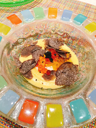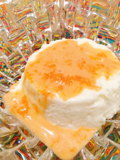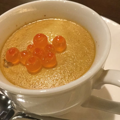 「烏骨鶏のパンナコッタ ウニキャラメルソースがけ」