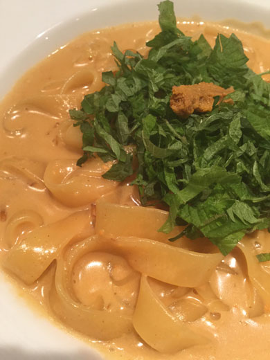 自由が丘「ミキヤズ」で「ウニと大葉のクリームソース」を食べた。ウニのソースがつゆだくだった。パスタを食べ切ったあとにもたくさん残ったソースを、スプーンですくってゴクゴク飲んだ。