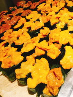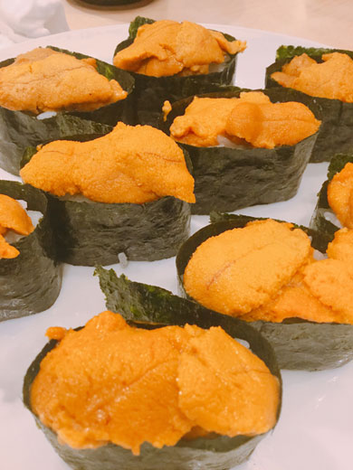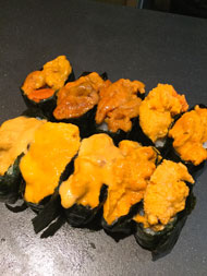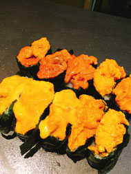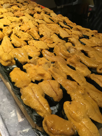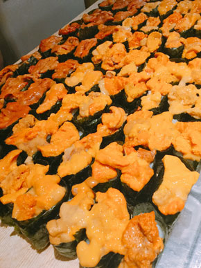 さらには、その日入荷したバフンウニやムラサキウニ、ミョウバンを使っていない塩水ウニなどさまざまな種類のウニが追加でやってくる。