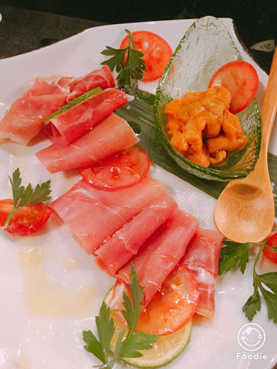 この日のメニューは、自家製ウニ塩、自家製ウニ塩で食べる豆腐、本日のウニ 産地食べ比べ三種、いかのウニ塩辛、自家製からすみとウニ、ウニの茶わん蒸し、ウニのムース、自家製ウニバターとバケット、自家製ウニバターと極上有明海苔、ウニの昆布醤油漬けと甘えび、アボカドディップとエビ ウニソースのカクテル、エビ天ぷらとウニマヨネーズ、ノンオイルウニドレッシングのサラダ、尾崎牛とウニの握り、極上ウニの握り三種、ウニのパスタ、ウニ出汁で食べる稲庭うどん、小さめなウニ丼、自家製ウニのアイスクリーム、尾崎牛ハンバーグ、尾崎牛ステーキ、岩ガキ。