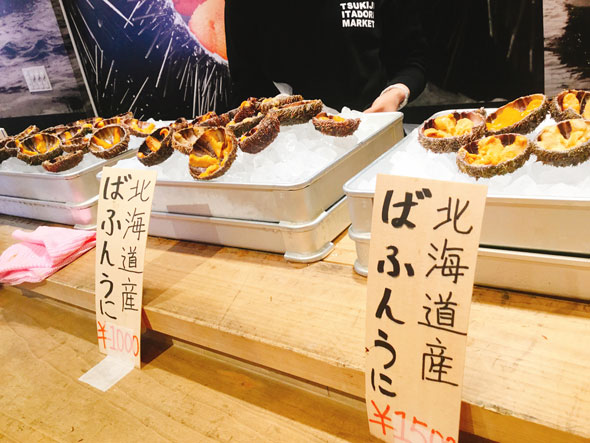 築地で仕事の打ち合わせをしたあと、ウニを求めて市場のほうへ行った。「うに小屋」ではその場で殻つきのウニを食べられる。