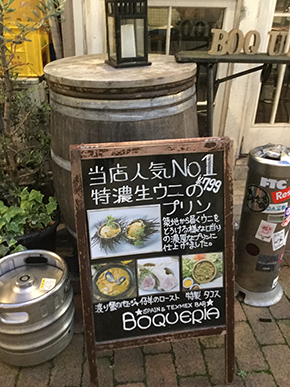 以前、ウニプリン完売で涙を飲んだ中野の「ボケリア」へ。今回はオープン時間を狙って万全の状態で出陣。まだ私以外ほかに誰もお客さんがいない中、「ウニプリン」を食べた。ウニが、確かにプリンだった。そこにあるのは紛れもなくウニ。しかし、プリンである。どういうことなのだろう。ウニはプリンだったのだろうか。はたまた、プリンがウニなのだろうか。