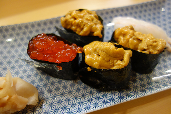 また、特筆すべきはこの日、ウニ丼を食べたあとに、別の店で握りまでいただいていることだ。これは明確に覚えている。ウニ丼に載っているウニだけでは、物足りなかったのだ。白米に対してウニの量が少なく、最後に残った酢飯を口に詰め込みながら、私はさらなるウニを欲した。ウニばかり食べてしのびなかったからか、言い訳がましく大トロも一緒に注文した痕跡がある。今ならウニ二貫にしていただろう。
