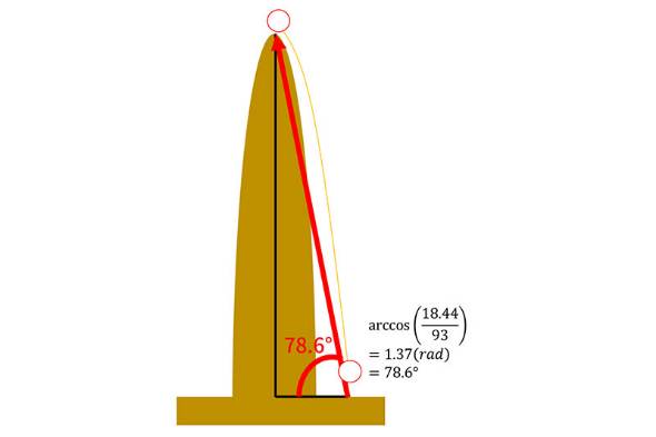 さて、残る仮定すべき変数は「素人の球速」だけ。筆者に関して言うと、高校時代体力テストのソフトボール投げが10mしか飛ばなかった弱肩の持ち主である。投げても平均的な成人男性には全く及ばないと思うので、球速を60km/h(=16.7m/s)とする。大谷選手との球速差は実に105km/h、それを埋めるマウンドの高さは……93m