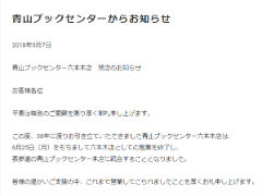 青山ブックセンターは、六本木店を6月25日で閉店すると発表しました。38年にわたる営業が終了します。
