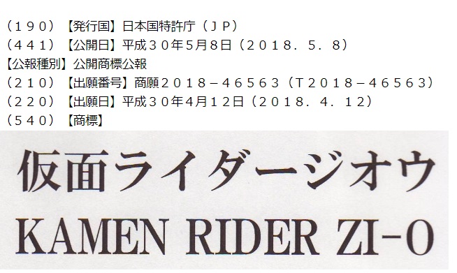 東映が「仮面ライダージオウ」の商標を出願していることが分かりました。公開商標広報(特許庁に商標登録出願をすると出願情報が掲載されるもの)データから明らかになったもので、ネットでは次期「仮面ライダー」のタイトルではないかと話題になっています。