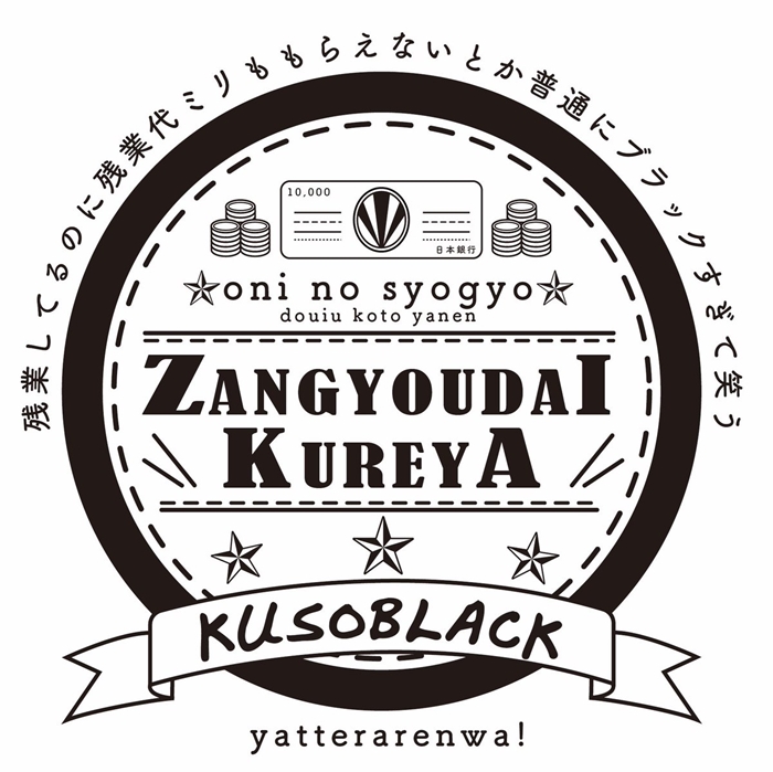 例えば「残業してるのに残業代ミリももらえないとか普通にブラックすぎて笑う」というロゴでは「☆oni no syogyo ☆ douiu koto yanen」(鬼の所業 どういうことやねん)、「ZANFYOUDAI KUREYA」(残業代くれや)、「KUSOBLACK」(糞ブラック)、「yatterarenwa!」(やってられんわ!)と心の叫びが爆発。書いてあるメッセージはえげつないのに、それっぽいロゴになっているためシャレて見えるのがなんともシュールです。
