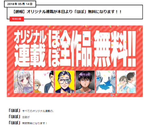 具体的にはアプリは最新1話、Webは最新2話を除いて無料公開し、期間は単行本1巻発売月の前々月末まで(「中間管理録トネガワ」「ガカバッカ」「わたし、いい人やめました」を除く)。「オリジナル連載をどんどん読んで欲しい」「でも単行本とかも買って欲しい」ことが理由としています。