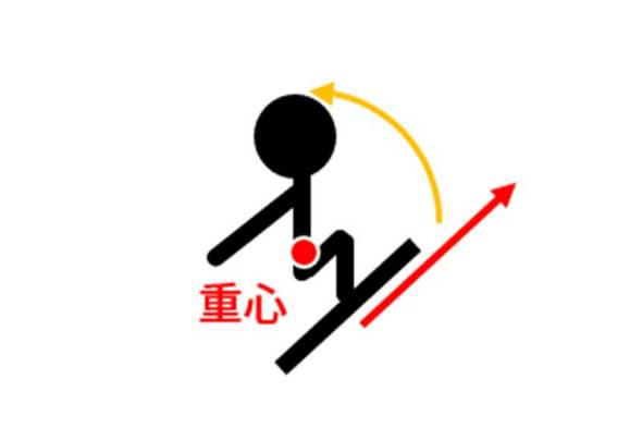 板に勢いがついた状態で上向きに飛び出すと、板の慣性で身体が後ろに回ってしまうのだ。これでは当然、うまく飛ぶことはできない。
